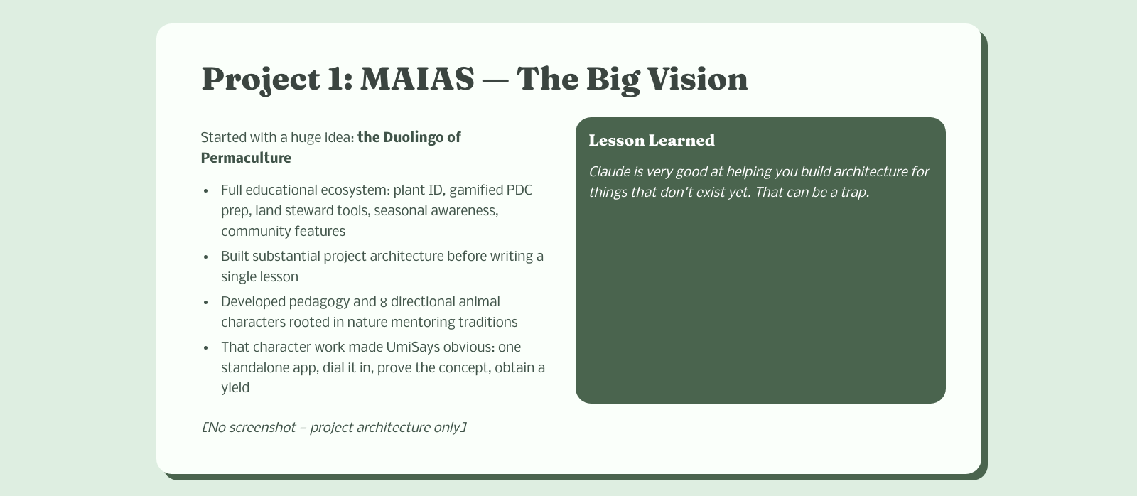 - They jumped ahead, assumed answers, made design choices I never asked for